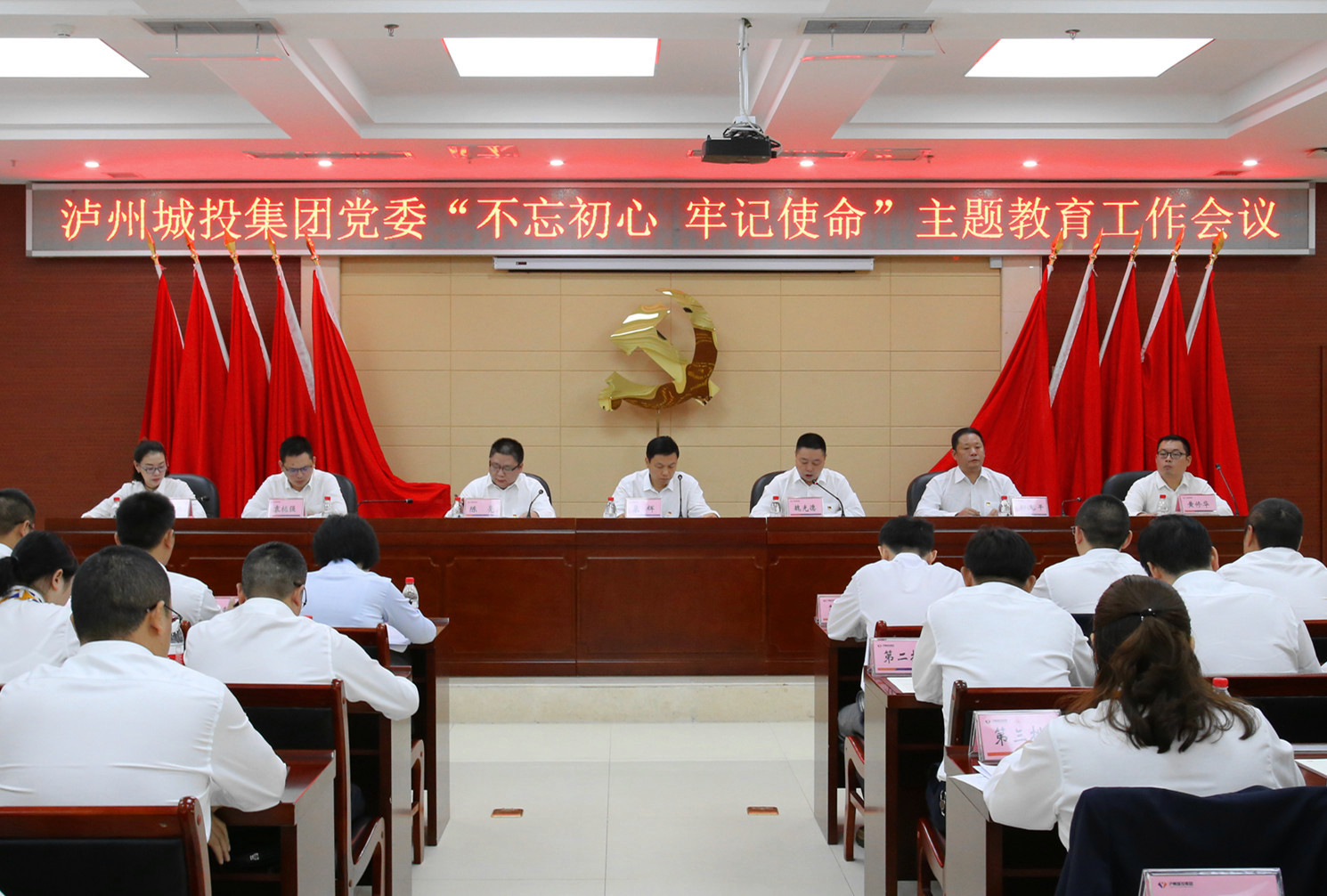 9月20日,瀘州城投集團(tuán)黨委召開“不忘初心、牢記使命”主題教育工作會。瀘州城投集團(tuán)總經(jīng)理陳亮主持會議。瀘州城投集團(tuán)黨委書記、董事長魏光德作全面動員部署,市委主題教育第一巡回指導(dǎo)組組長粟輝到會指導(dǎo)。集團(tuán)公司全體黨員、集團(tuán)公司非黨員中干、子公司非黨員高管和中干共130余人參加會議。